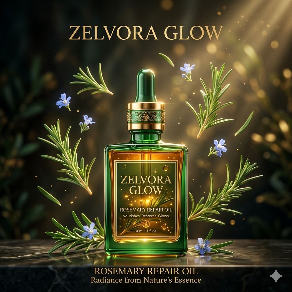 Zelvora Glow Rosemary Repair Oil is specially crafted to restore and repair damaged hair caused by pollution, heat styling, and chemical treatments.